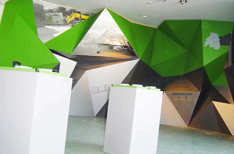 Die so entstehenden 3D-Fassaden sind nicht nur in sich stabil und vielseitig bespielbar, sondern ergeben auch eine elegante Raumgestaltung.