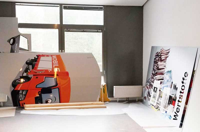 Die verwendeten Leichtbauplatten werden in mehreren Arbeitsschritten bearbeitet. Dadurch können sie geformt, gestaltet, bedruckt und gebrandet werden. Trotzdem bleiben die Platten stabil und sind widerstandsfähig.