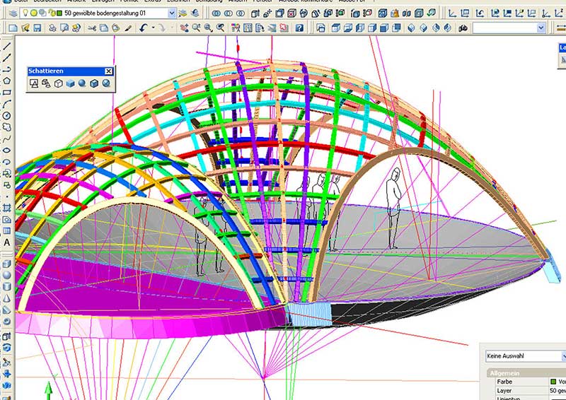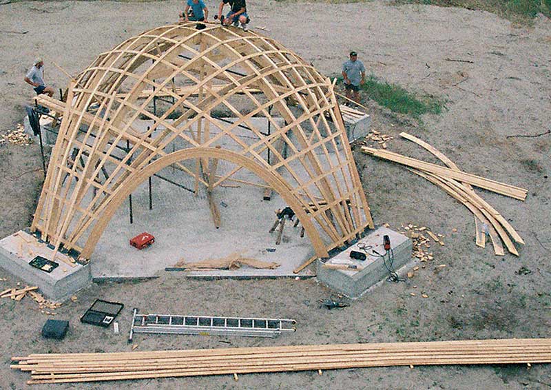 während der Montage vor Ort aus geraden Brettern in Form gebracht. Nach genauen Vorgaben werden