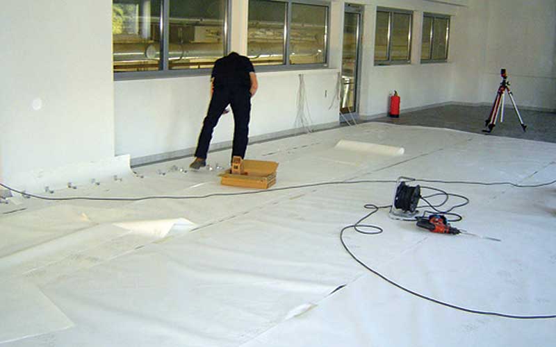 befestigt werden mussten. Nachdem dafür eine sehr genaue Positionierung erforderlich ist, wurden diese Punkte mit einer Schablone auf den Boden übertragen.